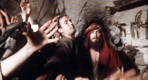 From the sermon on the mount scene with the people in the back getting into a fight about having a big nose. To later the stoning scene with the local women all wearing beards to attend, women weren’t allowed at stonings. To the Roman centurion who spends the time with Brian to correct his grammar, by conjugating verbs with him, for the graffiti being put all over the walls. Later the stuttering of Eric Idle in the crucifiction line. You see, this troupe of six men (John Cleese, Eric Idle, Michael Palin, Terry Gilliam, Terry Jones and Graham Chapman) played most of the various roles in the movie for both men and women. They were cutting edge for their time in both TV and movies.