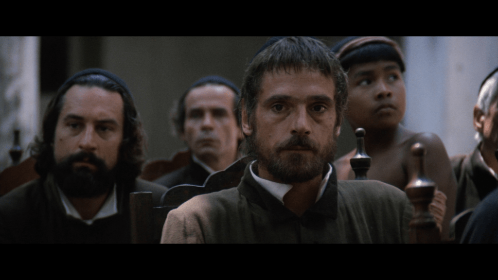 Roderigo Mendoza, played by Robert DeNiro, is a slave trader who is a violent man, quick to anger and sees the worst of humanity, to which he contributes without hesitation. His life changes, however, with an unspeakable act which brings him to seek forgiveness and repentence. Roderigo is brought before Gabriel, and Gabriel expects him to provide absolute obeyance to Gabriel’s word if he was to take him in as a new priest. Roderigo accepts. Roderigo is brought to Gabriel’s mission at the top of the waterfall where he sees the people first hand who he was enslaving. The indigenous people provide him with forgiveness, welcoming him into their community. The mission itself is a haven for the indigenous people (the Guarani) who can avoid enslavement from the territory owned by the Portugese, who run competing businesses, harvesting bananas and other produce.