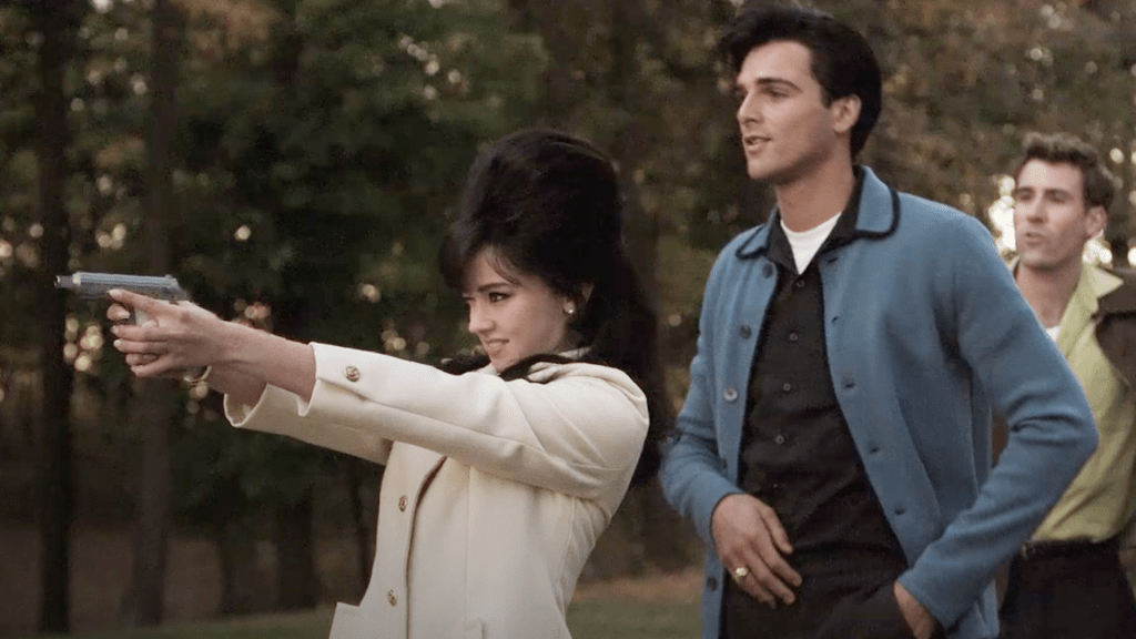 They dated until 1967 when they got married and they remained married for six years until 1973. A relatively short marriage, but it was certainly eventful. Elvis was by no means the ideal husband or partner. He was grooming her from the beginning in how she dressed, her hairstyle and (to his credit) focussing on her education. He also introduced Priscilla to pills that would help one sleep, or keep you awake. In the film he is shown giving her a pill upon her arrival at Graceland to help her sleep and she didn’t awake for two days. The drug use was prevalent. Through the tabloids, Priscilla was able to see Elvis being seen with co-stars like Nancy Sinatra and later Ann-Margret who was alleged to be engaged to him. Tensions clearly escalated over this, which Elvis was shown being angry and dismissive of Priscilla. The relationship didn’t improve with the birth of daughter Lisa Marie.